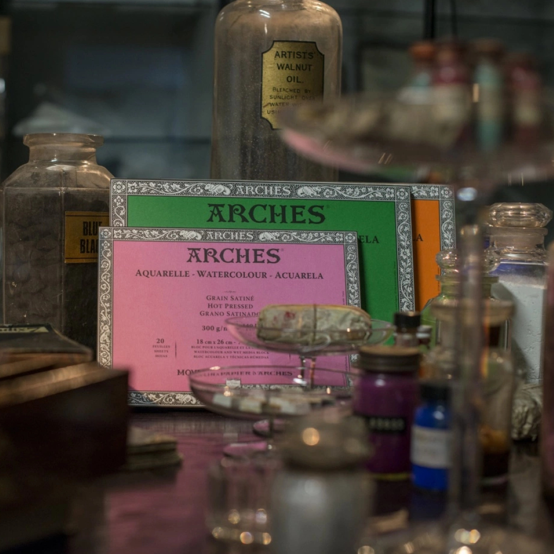 Bak papiret står det anerkjente franske papirmøllet Arches, grunnlagt i 1492. Med lang håndverkstradisjon er Arches et foretrukket valg for kunstnere som ønsker pålitelig og høykvalitets akvarellpapir.