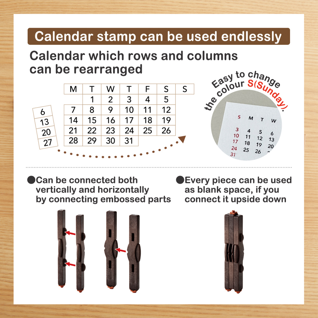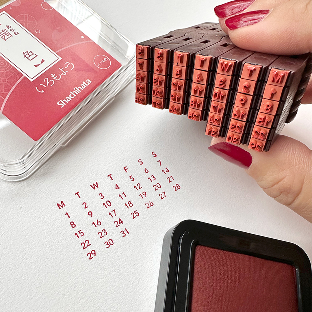 Shachihata Shachi-iro er et allsidig kalenderstempel som inneholder tallene 1–31, bokstavene M, T, W, T, F, S, S (ukedager) samt et par blanke felt. Stemplene kan tas fra hverandre, omorganiseres og kobles sammen både horisontalt og vertikalt, noe som gir et bredt spekter av kombinasjonsmuligheter.