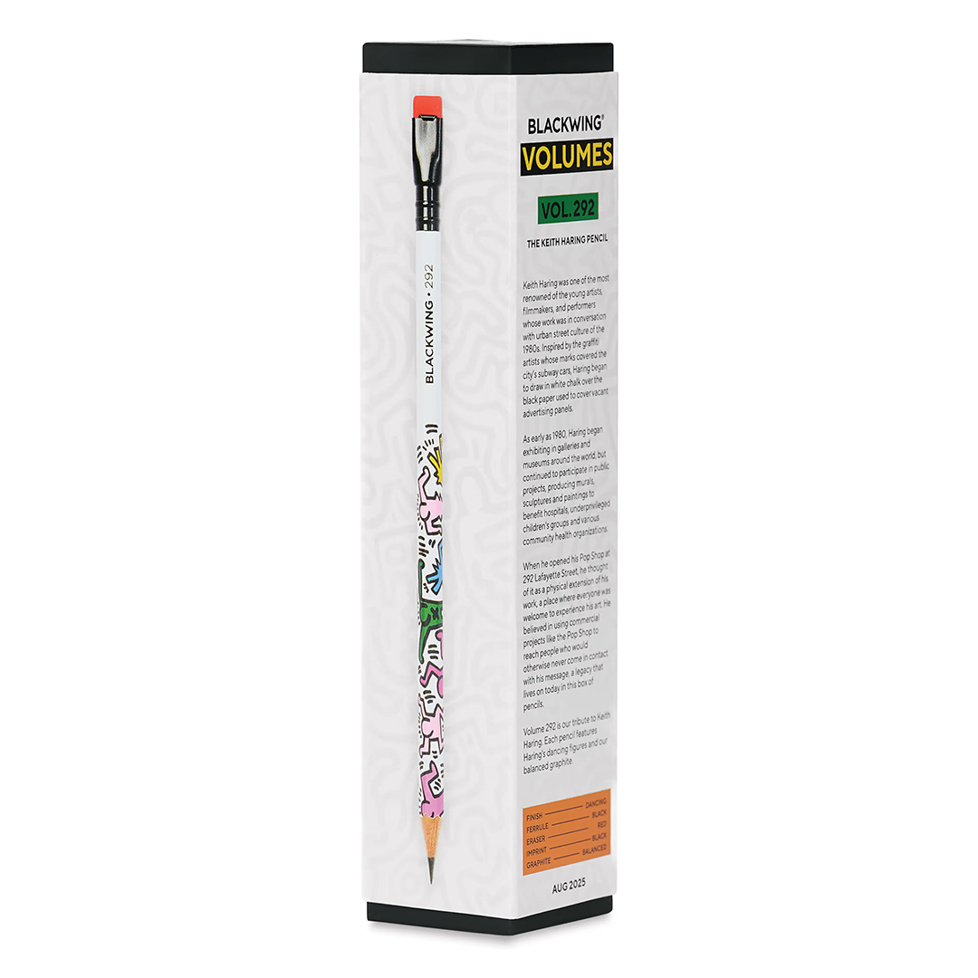 Hver blyant i Vol. 292 er prydd med Harings ikoniske dansende figurer og inneholder Blackwings Balanced-grafitt – myk, allsidig og perfekt for både notater og skisser. En begrenset utgave fylt med kreativitet, energi og den pulserende ånden fra en sann ikon.