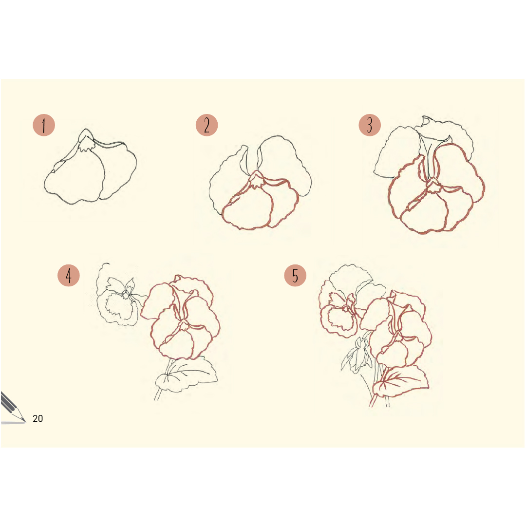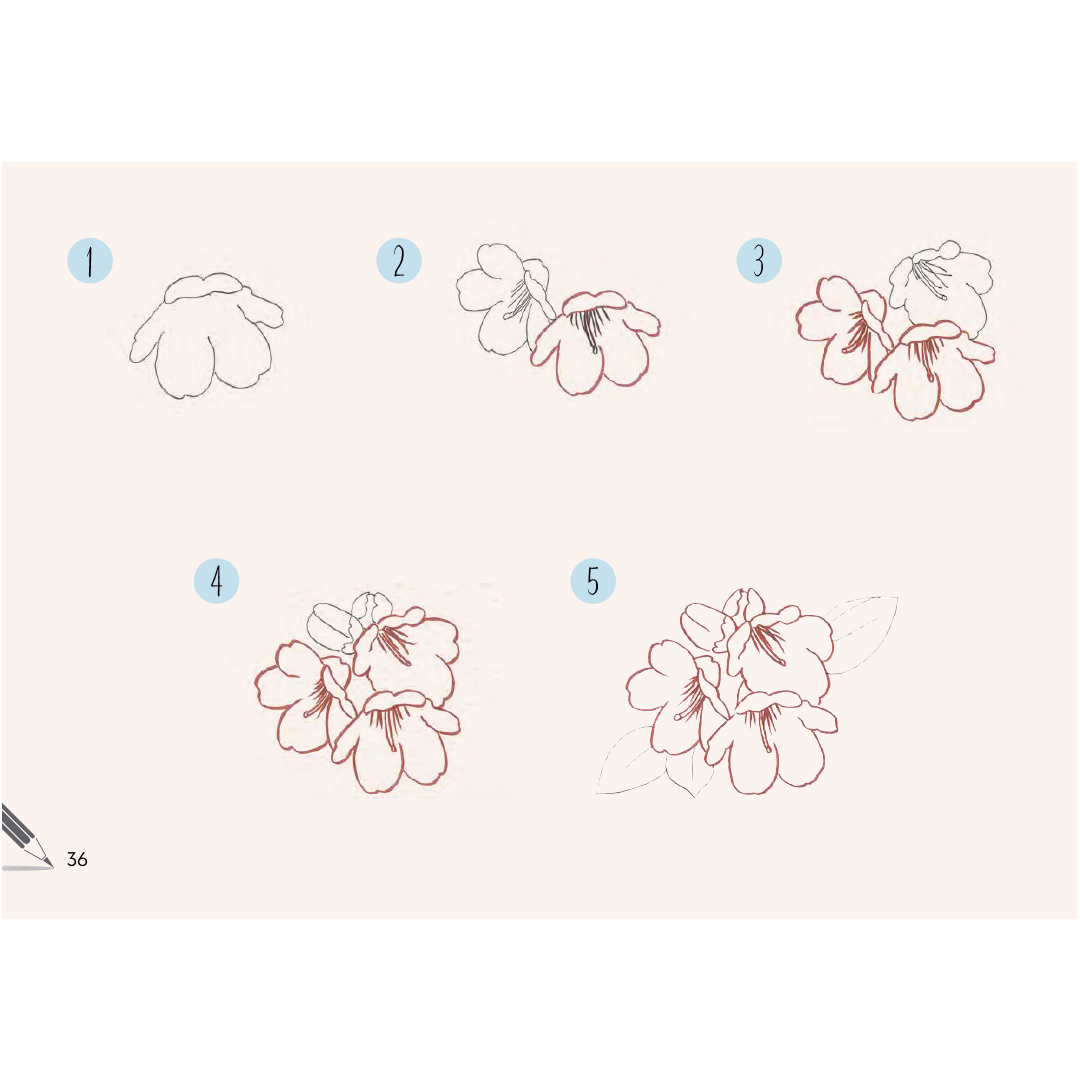 Med det lettfattelige liggende formatet kan du se hvordan blomstene springer ut over sidene, og deretter gjenskape dem selv på papir eller i skisseboken din.