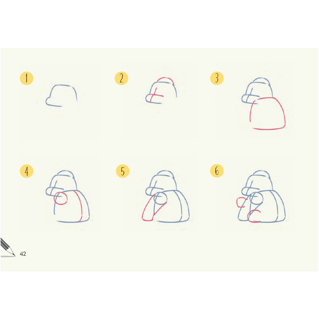 Med det lettfattelige liggende formatet kan du se hvordan stegene bygges opp over siden og deretter enkelt gjenskape dem… Bare ta frem favorittpennene dine og begynn å tegne!