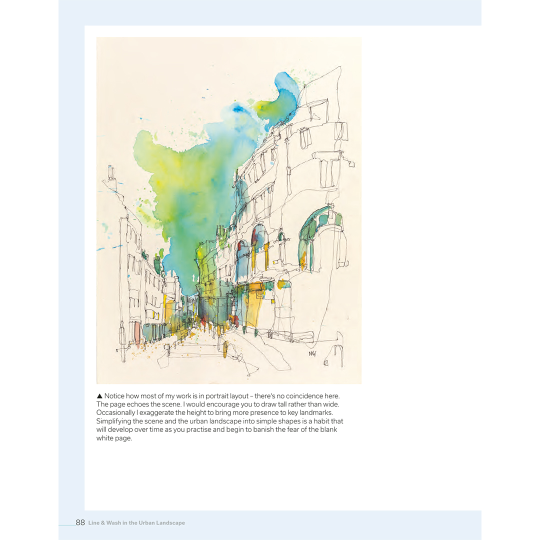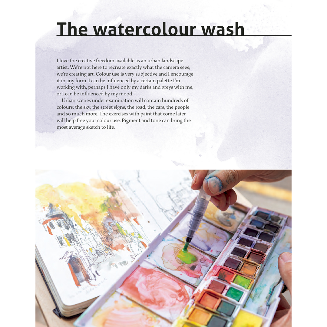 Full av inspirerende malerier, utendørsdemonstrasjoner, praktiske øvelser for å hjelpe deg å slappe av og slippe taket, samt mange nyttige tips, er *Line & Wash in the Urban Landscape* en omfattende og visuelt inspirerende guide til denne populære kunstformen.