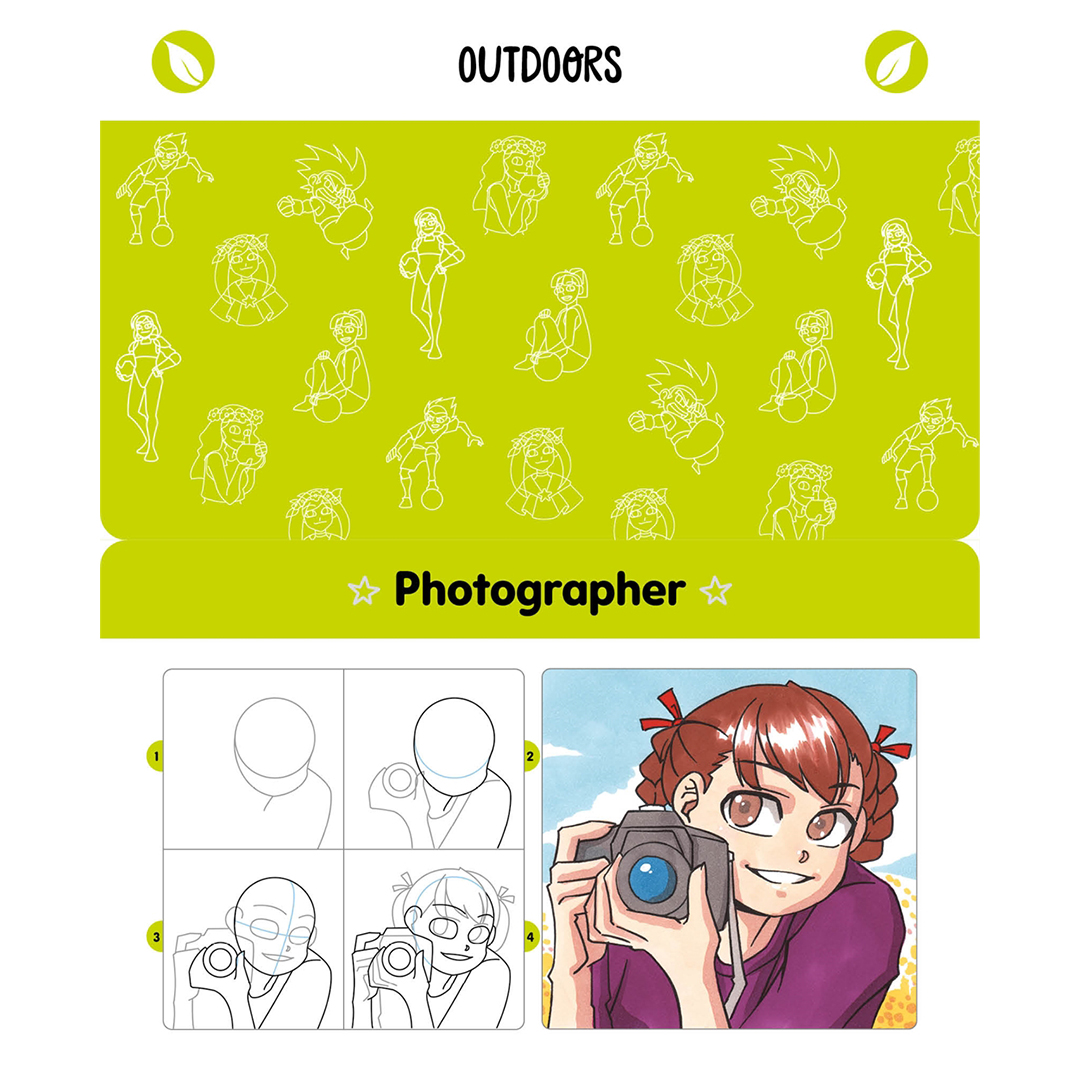 Lær hemmelighetene bak å tegne manga, fra å få riktige proporsjoner til å skape personlighet med forskjellige ansiktsuttrykk, og til å legge til dybde med lag av farge. Deretter følg 52 trinn‑for‑trinn‑sekvenser som viser deg nøye hvordan du bygger opp et stort utvalg av motiver, fra enkle former til å legge til detaljer, tekstur og farge. Hver sekvens er helt visuell, uten instruksjoner å lese, så det er virkelig enkelt å skape dine egne mangakarakterer. Alt du trenger er papir og noen penn.