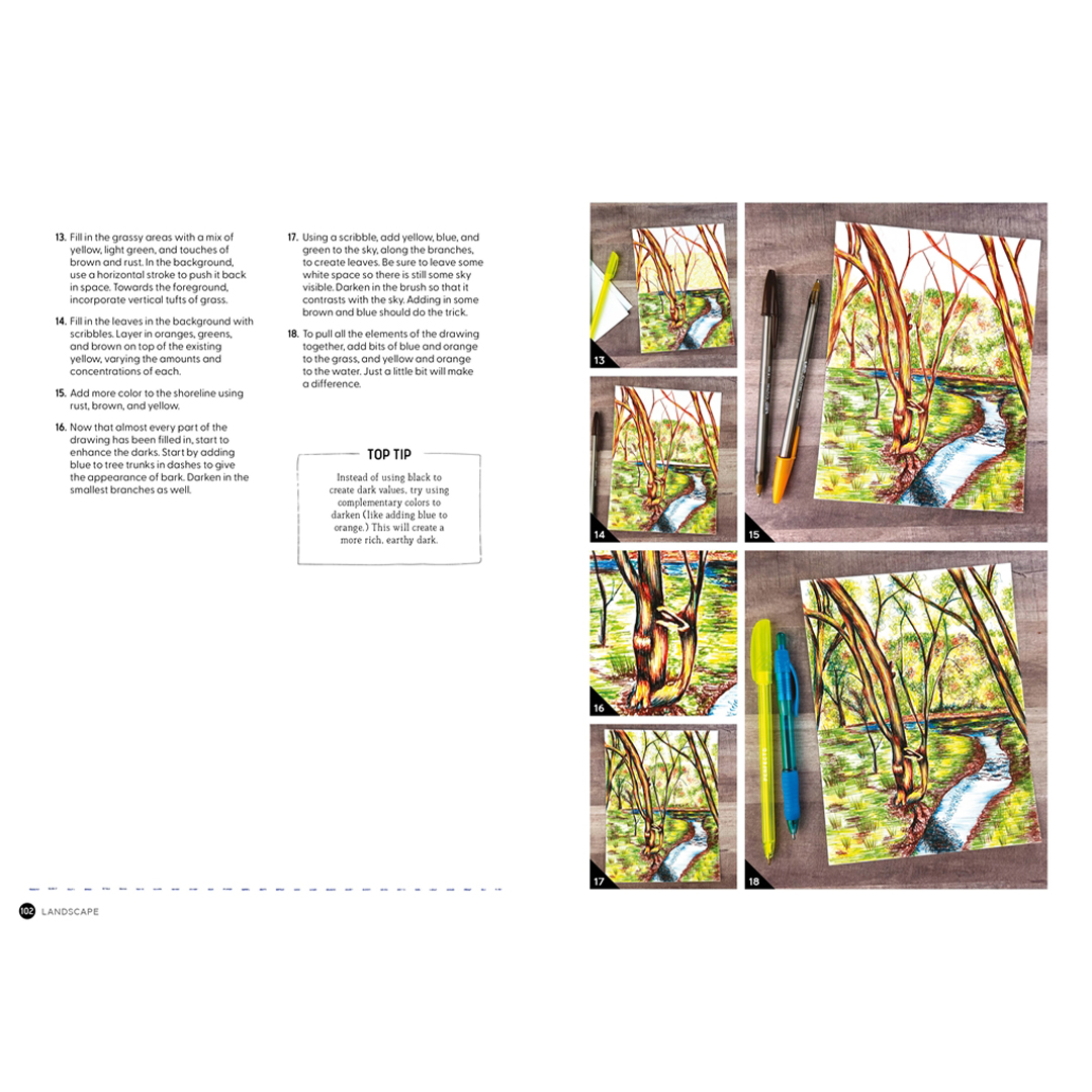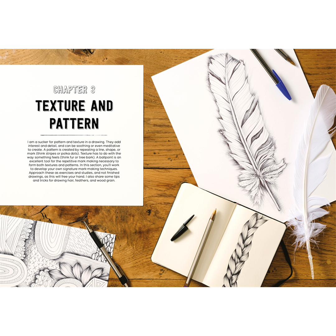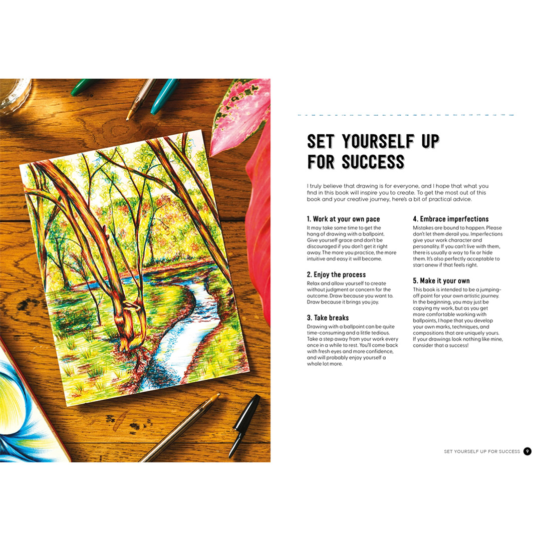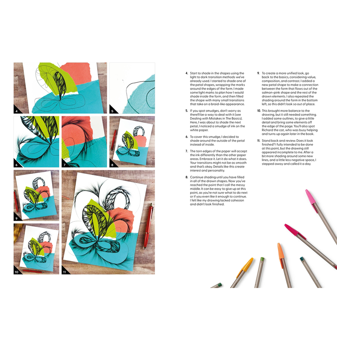 Fylt med øvelser, oppgaver, gallerier og teknikker gir Me and My Ballpoint Pen inspirerende råd om hvordan du kan starte, utvikle deg eller mestre kunsten å tegne med kulepenn.
