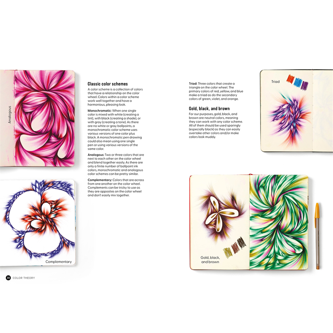 Oppdag kunsten, tilfredsstillelsen og gleden ved å tegne med én, to, tre eller flere farger med kulepenn.