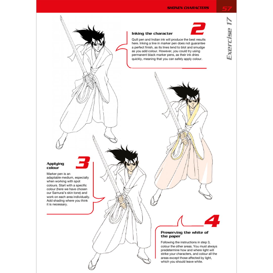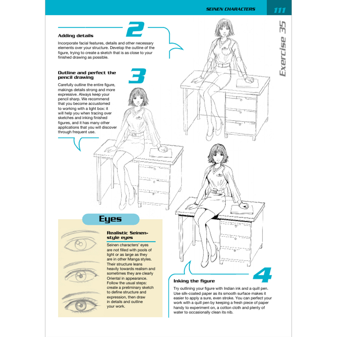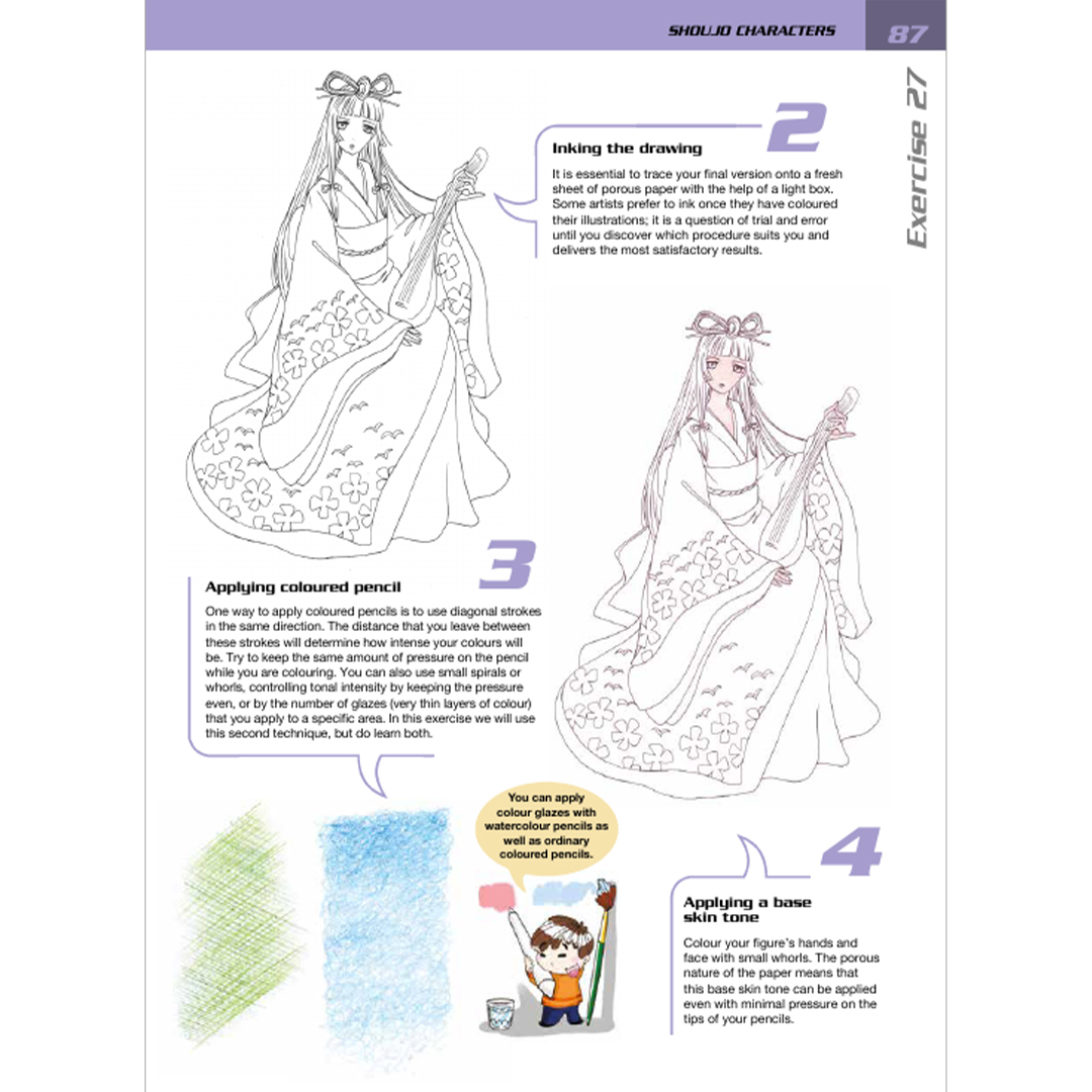 For å hjelpe deg på veien finnes det tydelige trinn-for-trinn-instruksjoner, med 10 øvelser for hver sjanger. Vennlige chibis dukker også opp av og til for å gi tips og råd å ha i bakhodet mens du tegner. Utfyllende råd om etterbehandling dekker alt fra farging på datamaskin til bruk av tusjpenn, pensel, filtpenn og blyantspenner, både i svart-hvitt og farge.