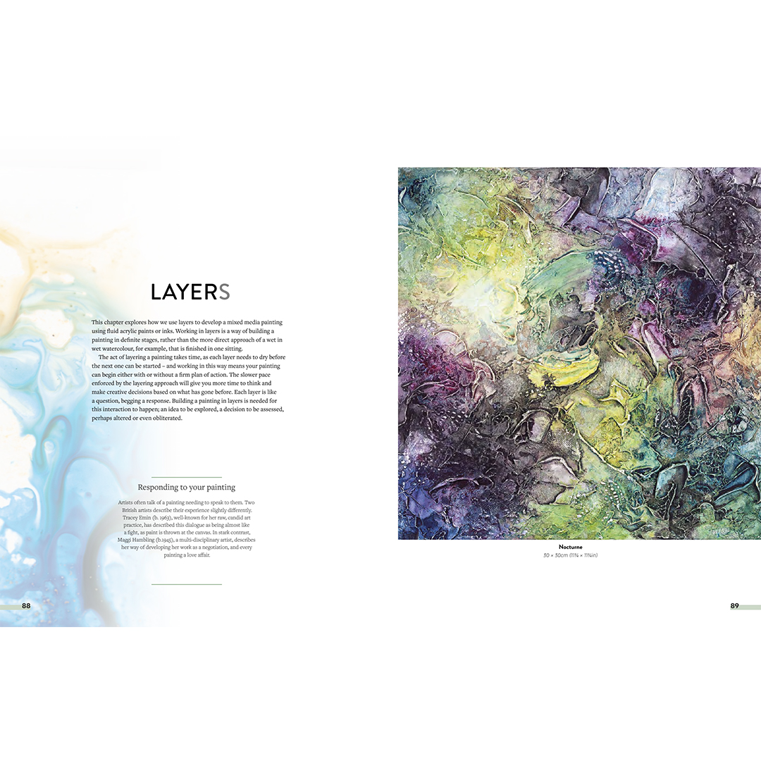 Boken guider leseren gjennom enkle kombinasjoner av flytende medier som akvarell, gouache, akryl og blekk. Den går videre med å utforske andre medier og teknikker, og viser hvilke medier som kan kombineres godt og hvilke som frastøter hverandre for å skape interessante og uventede effekter.