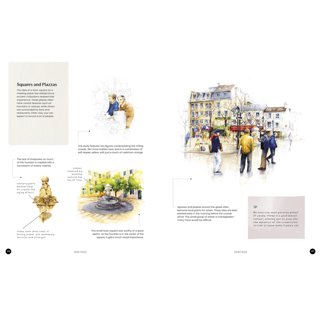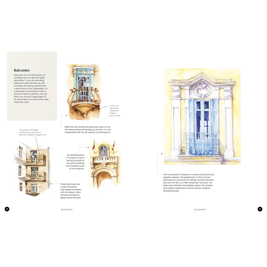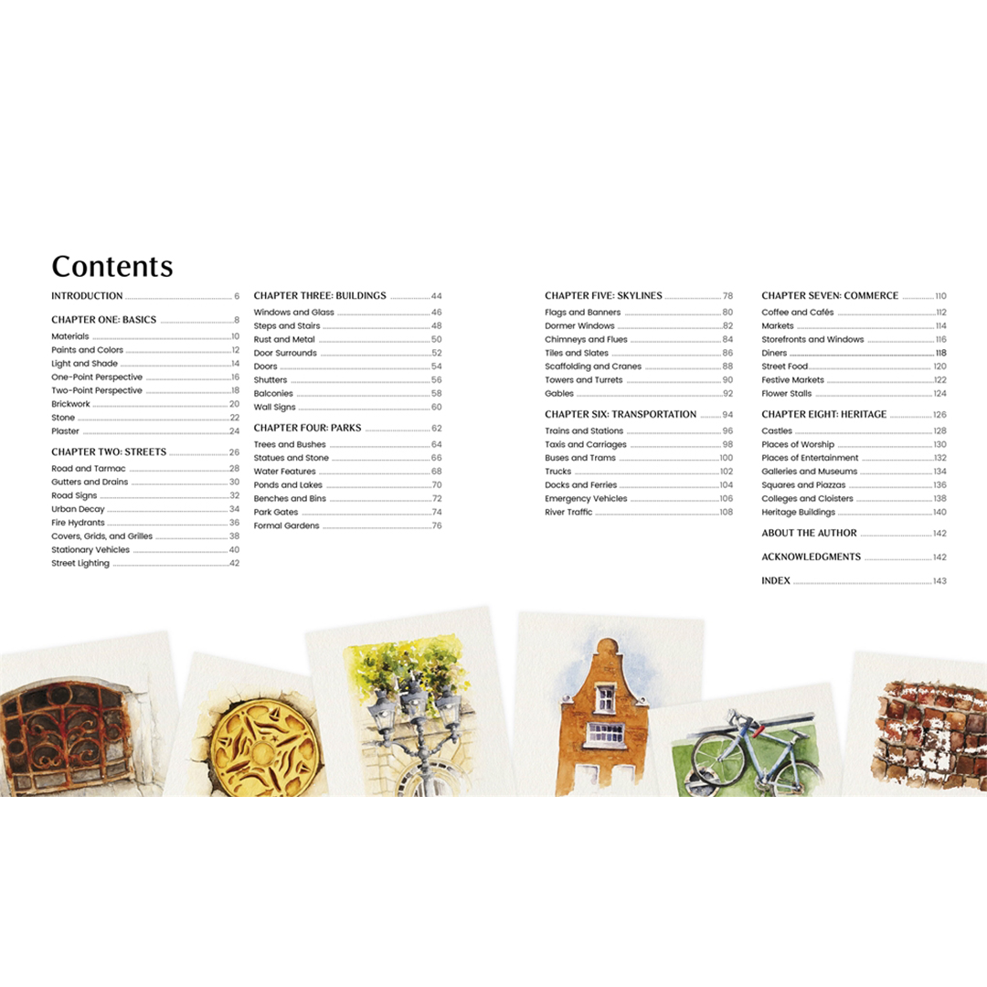 En briljant ny håndbok med praktiske teknikker for akvarellkunstnere som arbeider med urbane landskapsmotiver.