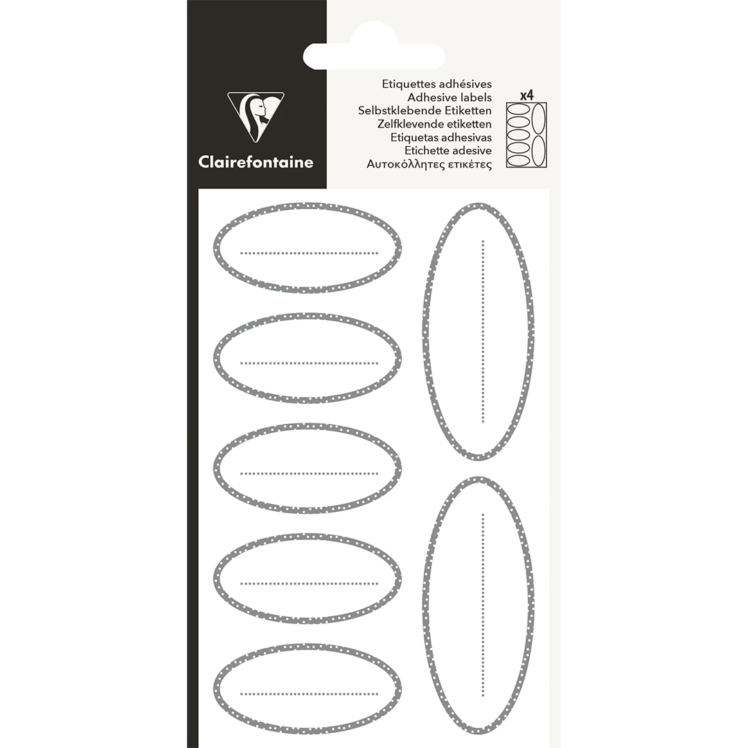 DIMENSJONER: Posen måler 8,5 x 16 cm. Den inneholder 4 ark med etiketter, 7 etiketter per ark.
