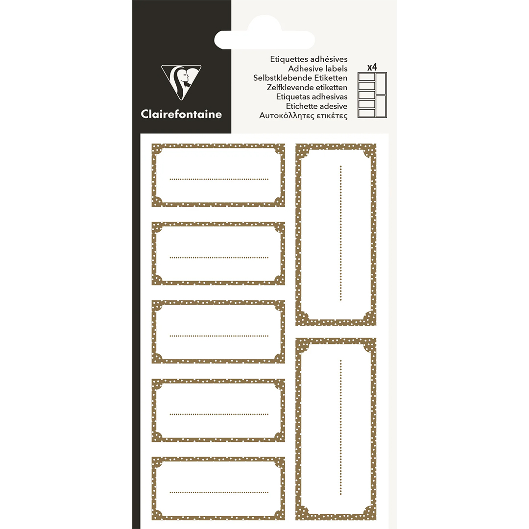 DIMENSJONER: Posen måler 8,5 x 16 cm. Den inneholder 4 ark med etiketter, 7 etiketter per ark.
