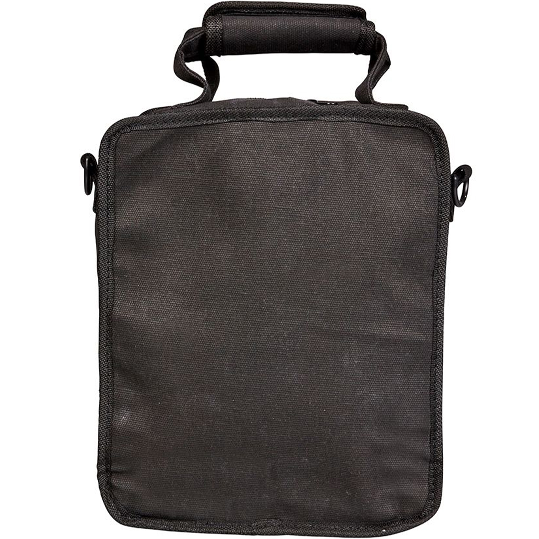 Størrelse: 22,5 x 27,5 x 13 cm. Laget av kraftig kanvas med avtakbar skulderrem.