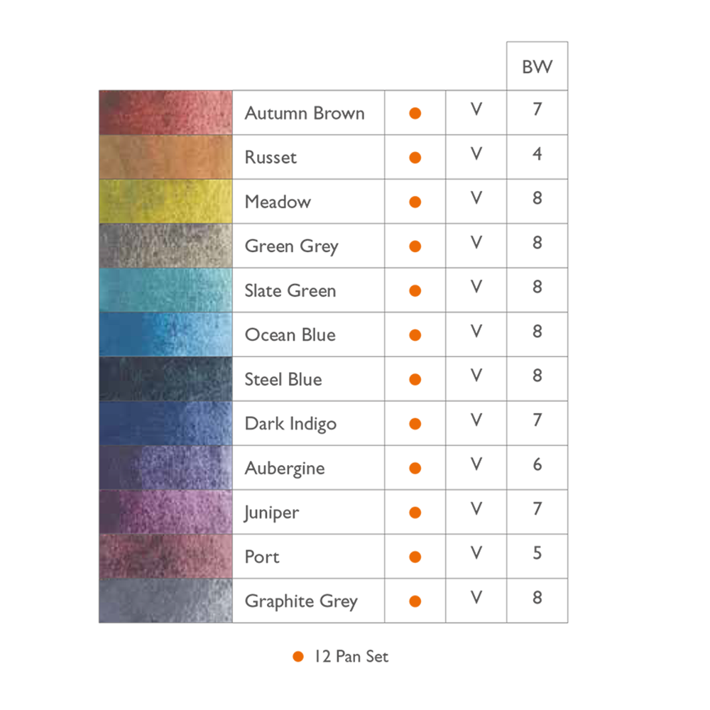 Farger: Port, Juniper, Aubergine, Dark Indigo, Steel Blue, Ocean Blue, Slate Green, Green Grey, Meadow, Russet, Autumn Brown, Graphite Grey