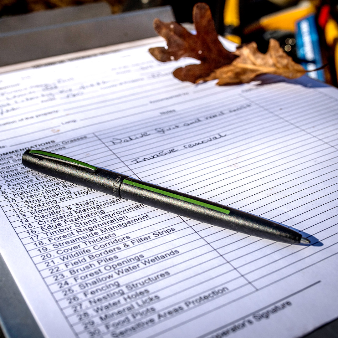 Den trykksatte patronen skriver i regn, varme, kulde, alle vinkler og selvfølgelig i verdensrommet!