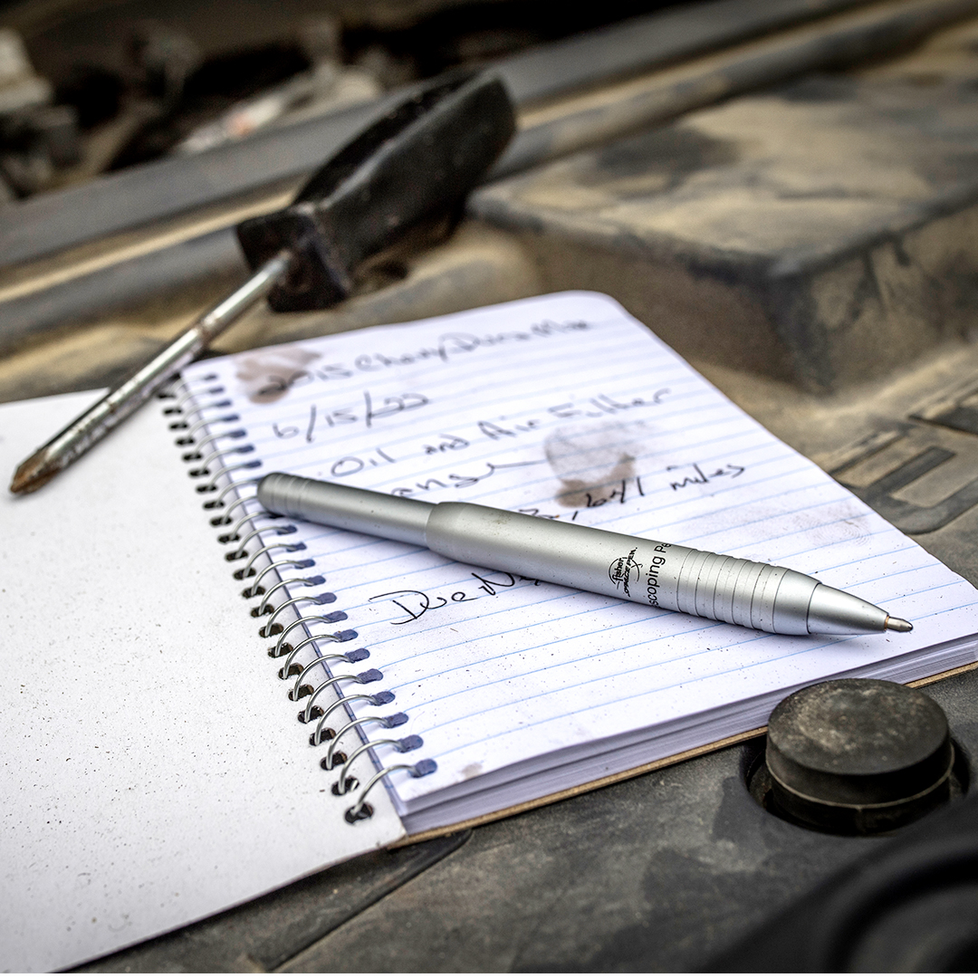 Kan etterfylles med trykksatte refiller til Fisher Space Pen. Pennen leveres med en svart medium refill i en gaveeske.
