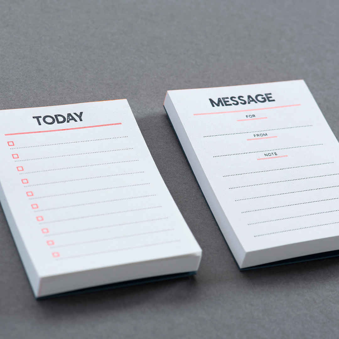 Settet inneholder to blokker med designene TODAY for daglige påminnelser og MESSAGE for beskjeder til familie, venner og kolleger. Gmund Bio Cycle-papiret er bærekraftig og økologisk takket være bruk av 100% resirkulerte fibre.