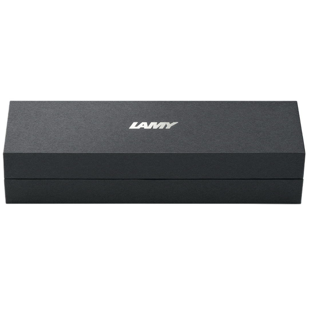 14 karat gullspiss, delvis platinabelagt. Svart høyglanset pennkropp. Utskiftbart grep og skruhette. Solid, fjærbelastet klips. Leveres med Lamy T 10 blekkpatron i blått. Kan også brukes med Lamy Converter Z 27 for bruk med blekk på flaske.