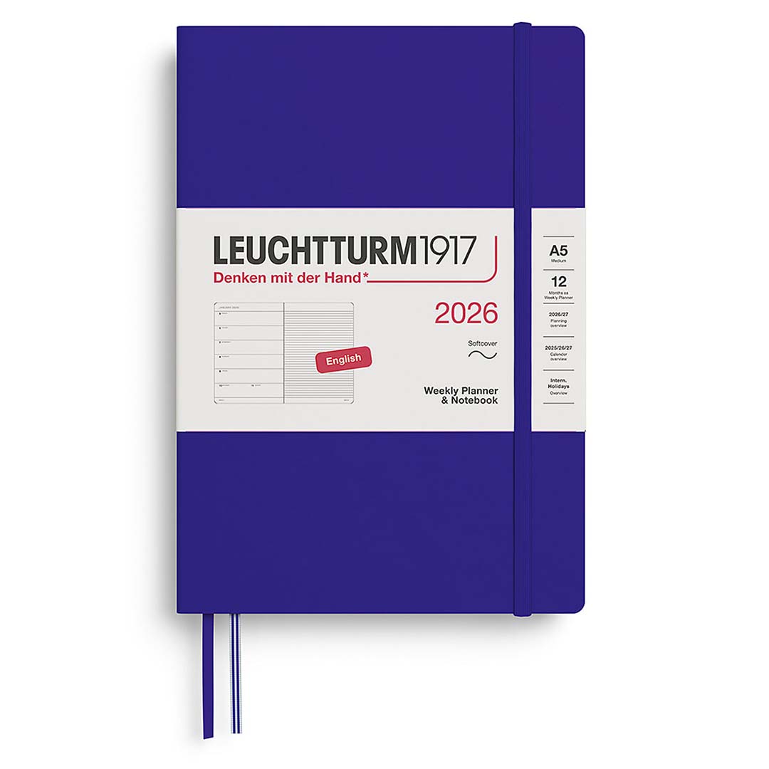 Planlegg året ditt med en kalender fra Leuchtturm1917 i A5-format med mykt omslag. “Weekly Planner and Notebook” har ukeoversikt på venstre side og plass til notater på høyre side. Layouten gir rikelig med plass til planlegging, organisering og notater.