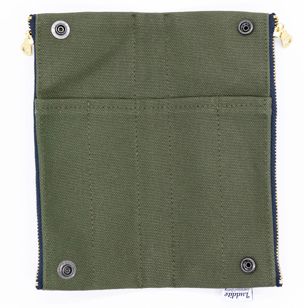 Elegant og praktisk pennal fra det japanske selskapet Luddite Co. Laget av Kurashiki-canvas, et slitesterkt og langvarig materiale. Pennalet har fem individuelle pennholdere og to separate sidelommer med glidelås for mindre gjenstander.