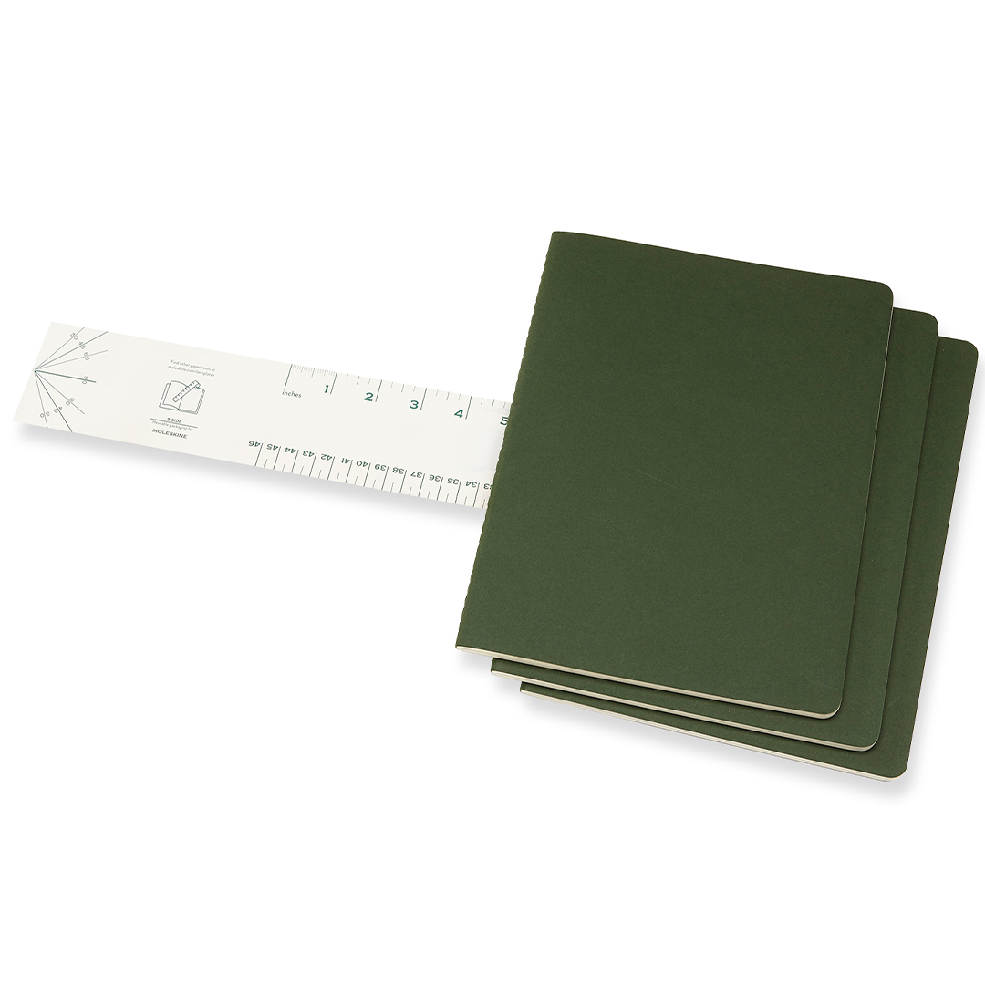 Sett med 3 notatbøker i XL-størrelse (19 x 25 cm) fra italienske Moleskine. Hver bok inneholder 120 sider, hvorav de siste 16 kan tas ut. Sydd innbinding og innerlomme. Syrefritt papir av høy kvalitet!