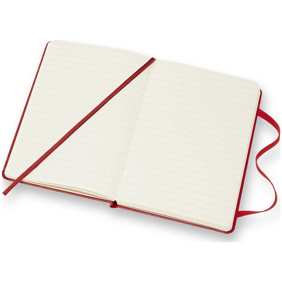 Notatbok med hardt omslag i Pocket-størrelse (9x14 cm) fra italienske Moleskine. Notatboken inneholder 192 sider og har en utvidbar innerlomme samt en elastisk stropp som holder boken lukket når den ikke er i bruk. Det elfenbensfargede papiret er FSC-sertifisert, syrefritt og av høy kvalitet!