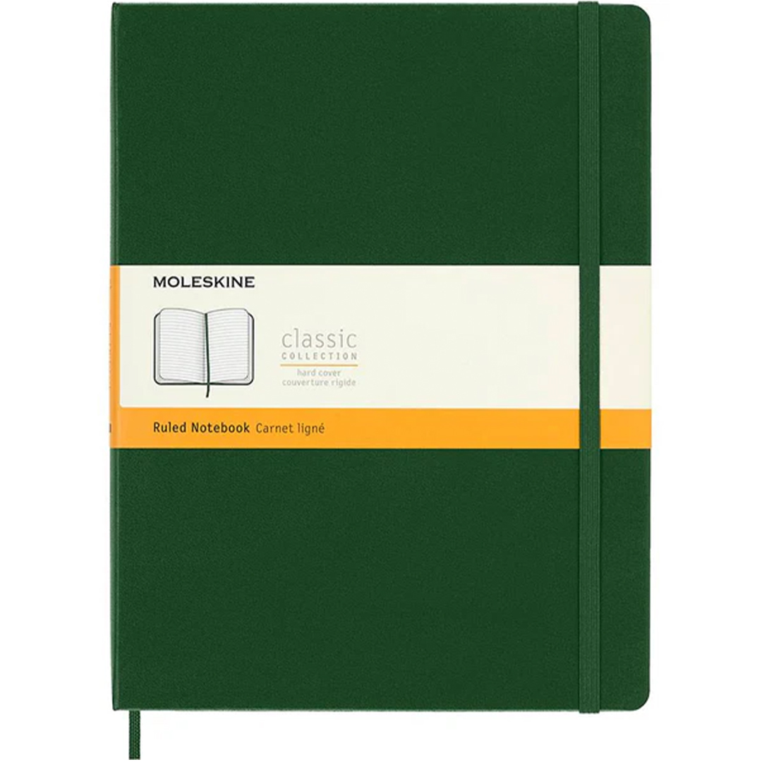 Notatbok med hardt omslag i XL-størrelse (19 × 25 cm) fra italienske Moleskine. Notatboken inneholder 192 sider og har en utvidbar innerlomme samt et elastisk bånd som holder boken lukket når den ikke er i bruk. Det elfenbensfargede papiret er FSC-sertifisert, syrefritt og av høy kvalitet!