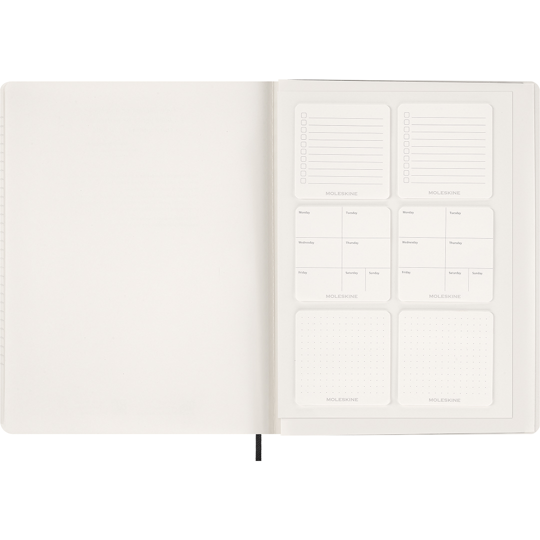 Smart årskalender i mykt og slankt format fra Moleskine, datert fra januar til januar, med alle ukens dager på et oppslag. Essential Planner er designet for å være lett å ta med seg, med lav vekt og høy brukervennlighet. Bruk de medfølgende klistremerkene og sticky notes for å planlegge akkurat slik du vil.