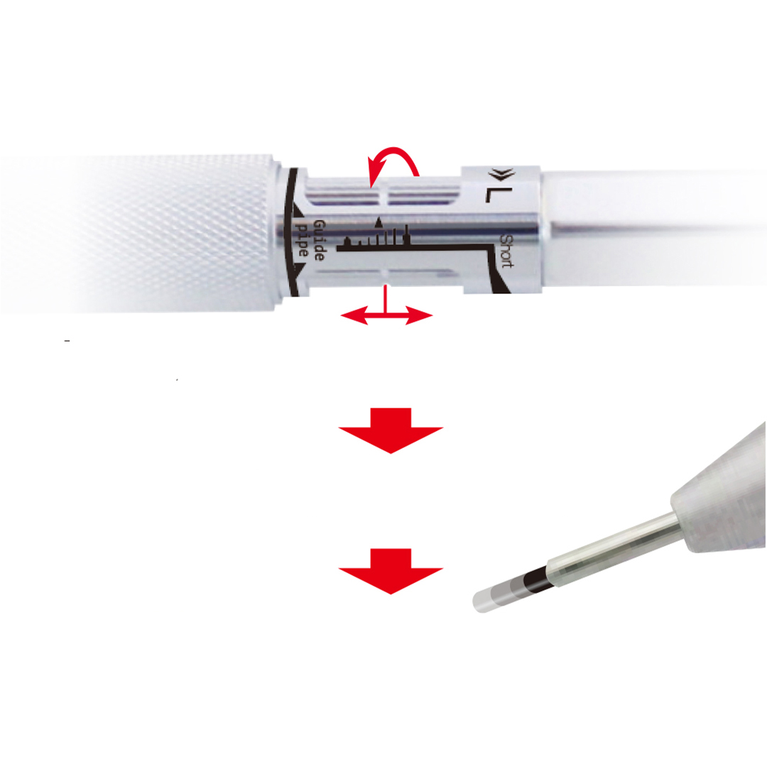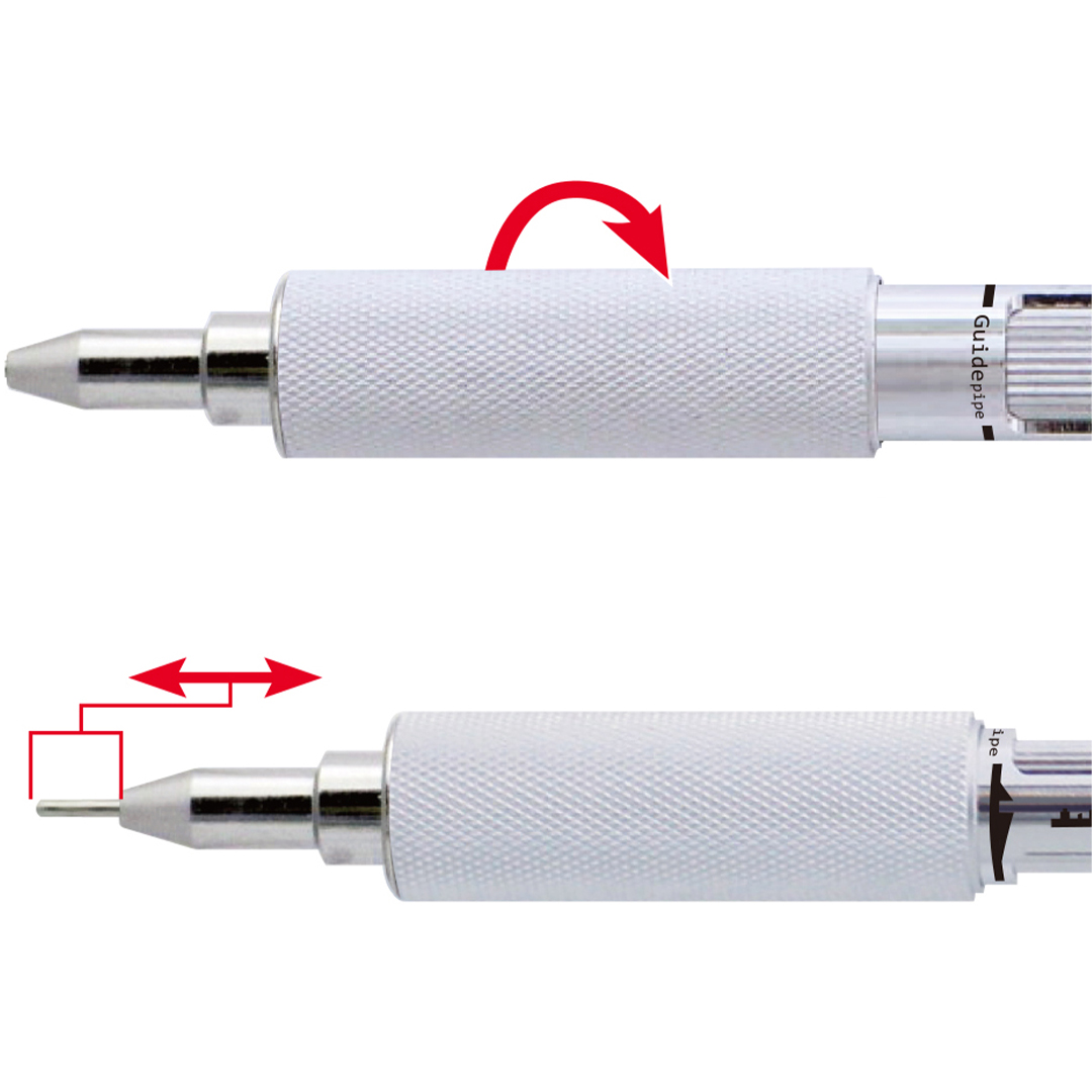 Med MS01 kan du tilpasse lengden på blyholderen og hvor mye bly som kommer ut ved hvert klikk. Blyholderen kan justeres fra 0 mm til 5 mm ved å vri på den riflete gripelementet, og mengden bly som kommer ut kan justeres fra 0,2 mm til 2 mm ved å vri på en del rett over grepet. Pennens kropp er laget av aluminium, og gripeområdet er messing, noe som gir en solid og godt balansert følelse.