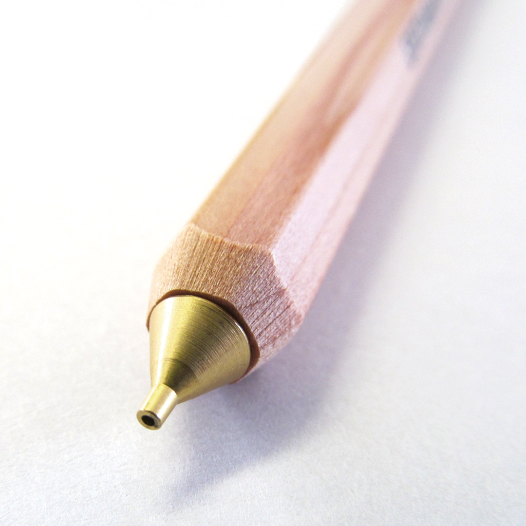 Pennkropp i naturlig sedertre med satinlakkert finish. Integrert viskelær. Påfyllbar med 0,5 mm stift. Produsert i Japan.