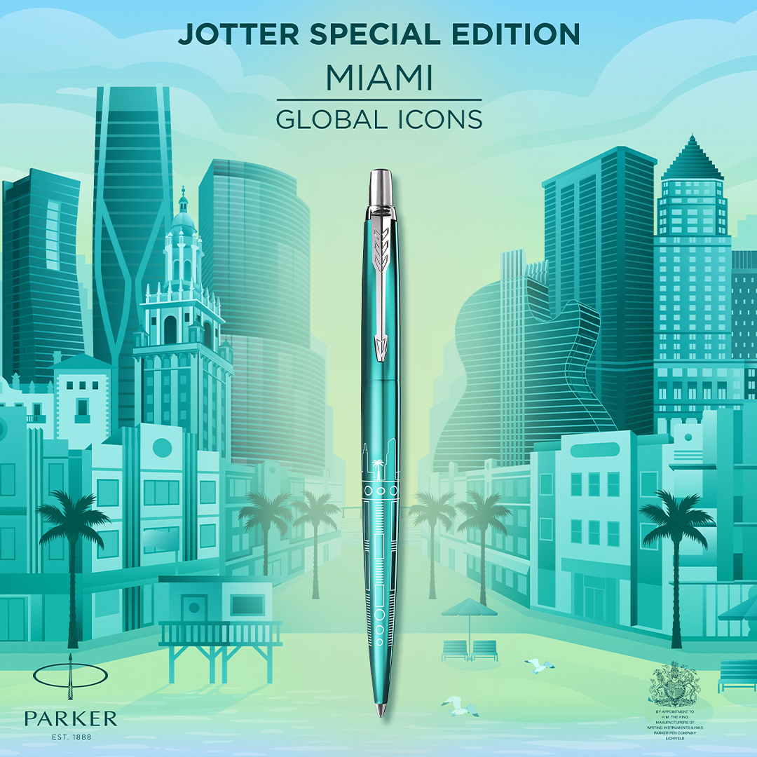 Oppdag verden med Parker-kolleksjonen Jotter Global Icons – en hyllest til fire ikoniske byer som former vår samtid. Hver penn fanger essensen av sin by gjennom unike designdetaljer og farger som forteller en historie. Velg mellom London, Paris, Seoul og Miami. Eller samle hele kolleksjonen!