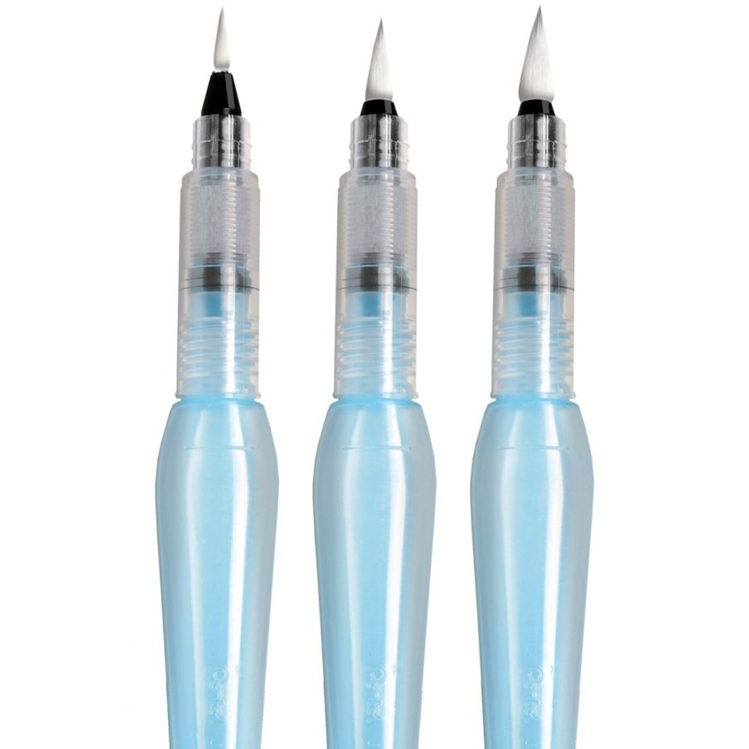 Med penselspissen kan du lage både tynne og brede linjer, akkurat som med en vanlig pensel. Under bruk renner vannet jevnt fra vannbeholderen og ut i penselspissen. Trenger du mer vann, trykker du bare lett på den myke plastbeholderen, og når beholderen er tom, fyller du den enkelt på direkte fra springen.