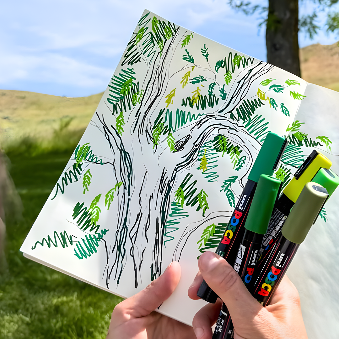 Med den splitter nye spissen får du det beste fra to verdener. Spissen er like fast og jevn som en klassisk marker, men samtidig fleksibel på en måte som gir en mer malende følelse. Det gjør at Posca ikke bare passer til grafiske uttrykk eller street art, men også er et naturlig valg for alle som liker å skisse, tegne og male mer organisk. Her er noen eksempler på når den virkelig kommer til sin rett: