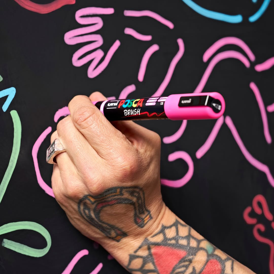Posca Brush er det nyeste tilskuddet i den ikoniske Posca-familien, en kultfavoritt blant skapere verden over. Fra street art til skoleprosjekter, fra profesjonelle illustratører til DIY-entusiaster brukes Posca av skapere i alle aldre og stiler. Med et bredt utvalg av spisser og farger finnes det en Posca for hver idé – og nå også med en semifleksibel penselspiss!