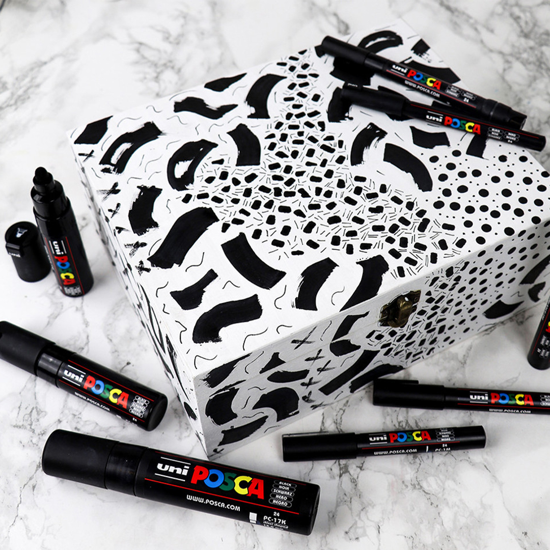 Blekket er vannbasert og legger seg oppå overflaten, dekker veldig bra selv på svarte flater. Fargen tørker raskt og blør ikke. Enkelt sagt, en veldig morsom marker!