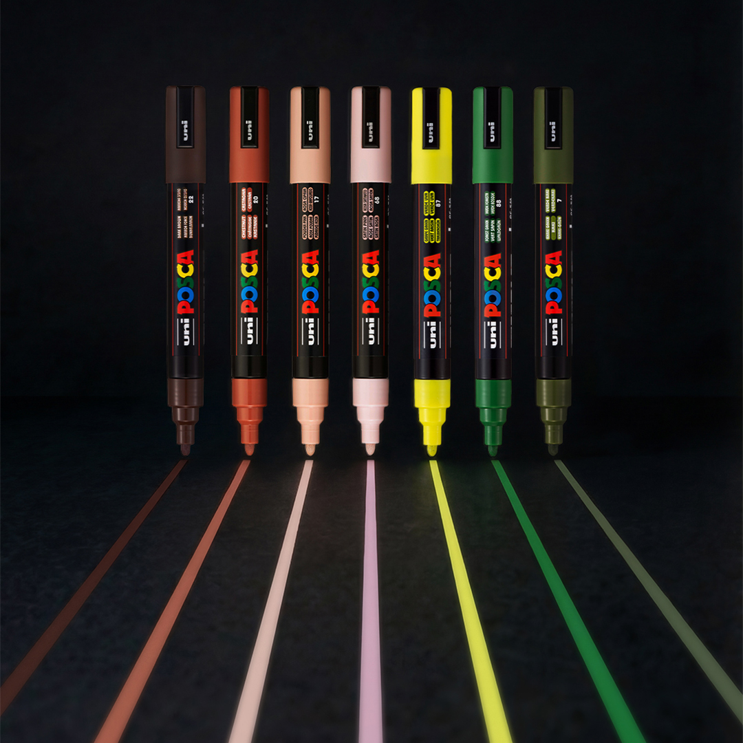 Posca er en ikonisk og allsidig akrylmarker som er populær blant både kunstnere, hobbybrukere og kreative skapere over hele verden. Markerne er fylt med vannbasert, dekkende farge som gir liv til idéene dine – også på mørke eller gjennomsiktige overflater.