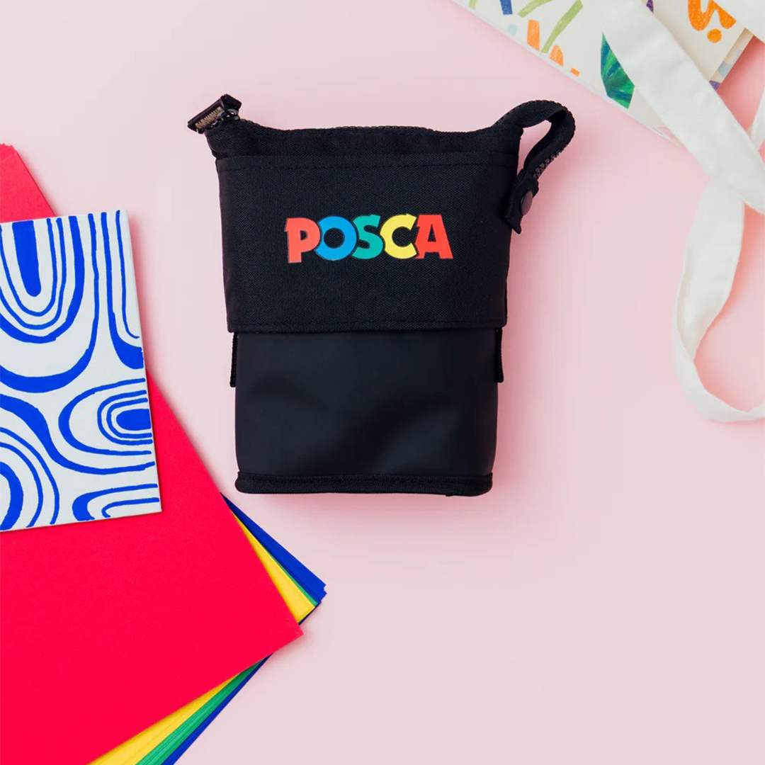 Ved å trekke ned den øvre kanten av pennetuiet får du et stødig pennstopp. Det tar plass til opptil 16 Posca PC‑5M.