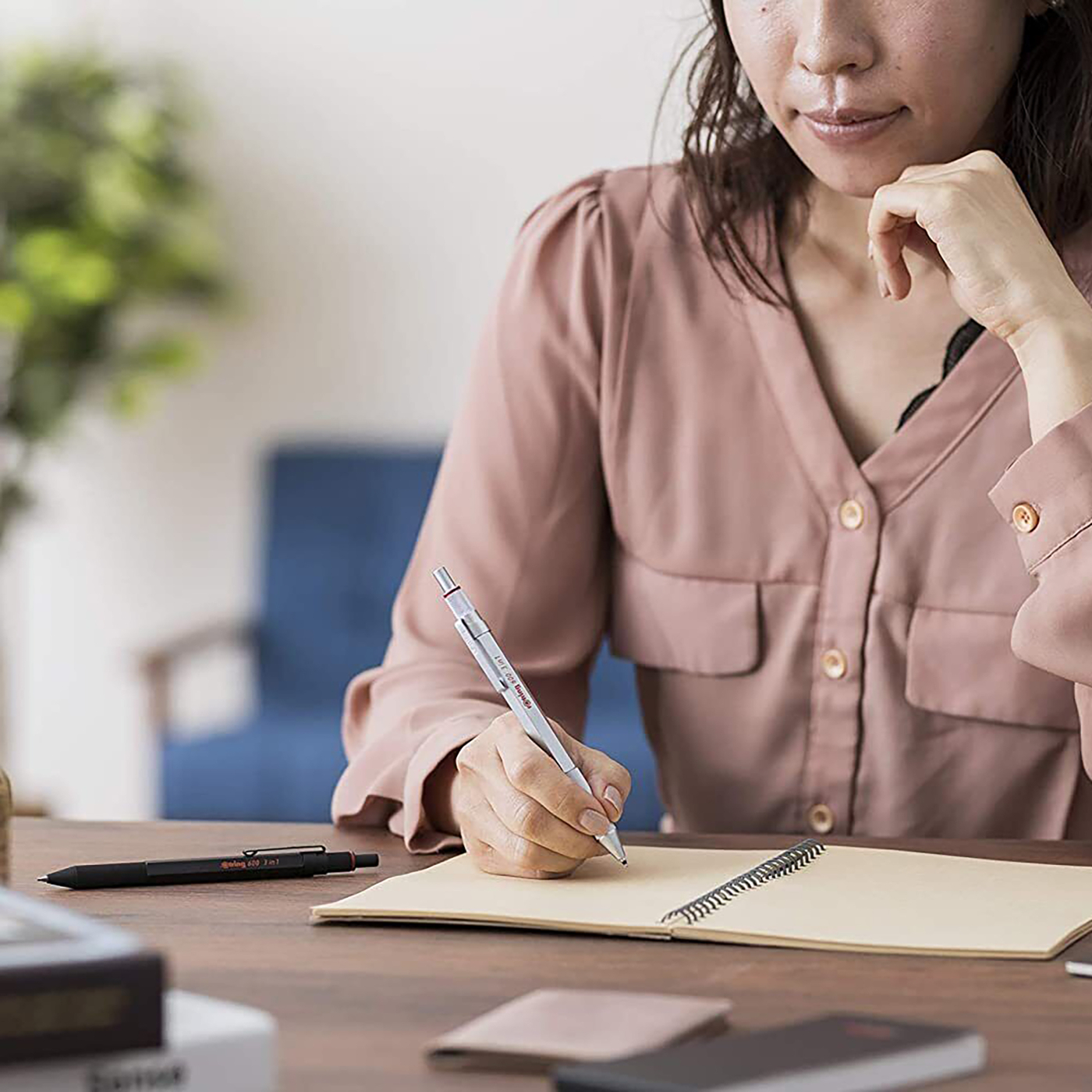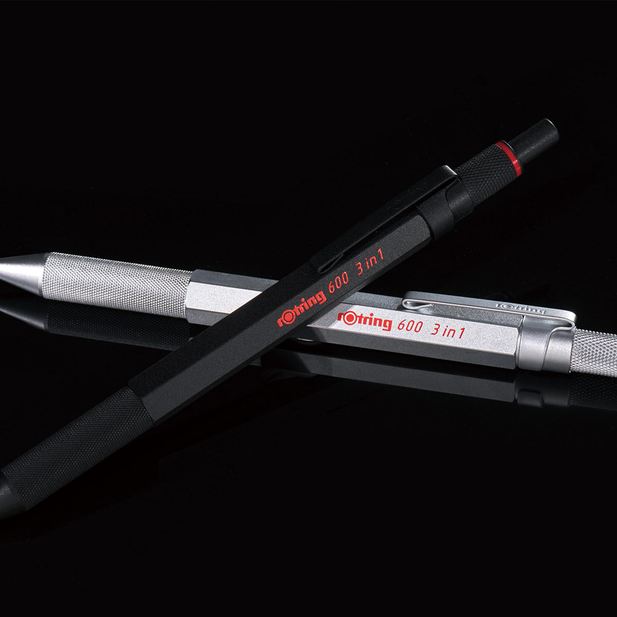 Roter enkelt mellom de ulike refillene gjennom å vri på den rillede delen ved trykknappen, som du deretter trykker ned for å klikke fram den valgte spissen.