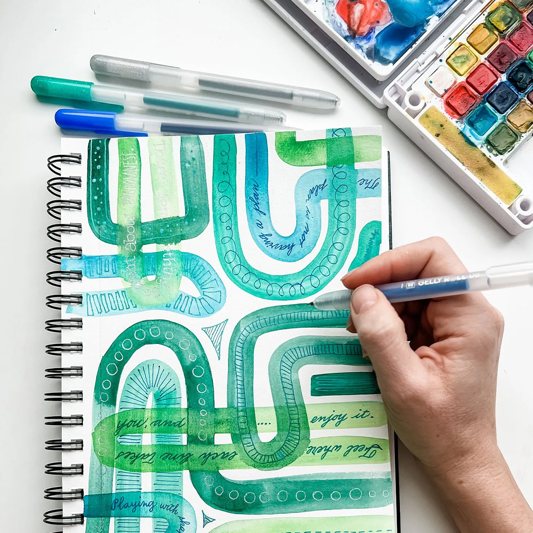 Den metalliske gelblekkformelen er dekkende og glansfull, tørker raskt og gir en fantastisk fargeeffekt som synes godt både på lyse og mørke overflater. Enten du skriver dagbok, skisserer eller lager kreative prosjekter, leverer den presise spissen skarpe og rene linjer – hver gang.
