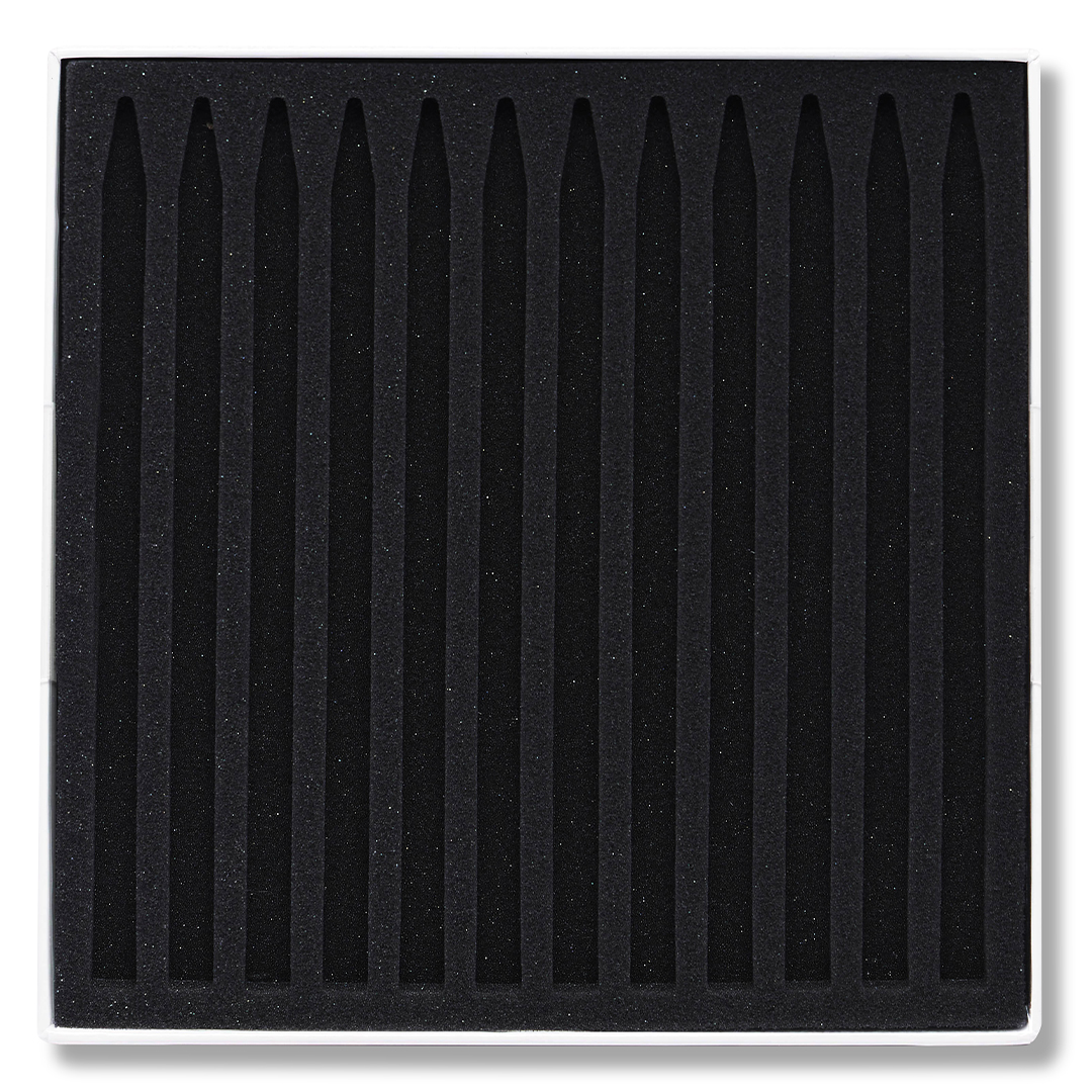 Uten trehylse består de gjennomgående av rent pigment, noe som maksimerer mengden brukbar farge. De er høypigmenterte og tilbyr eksepsjonell fargrikdom og livlighet allerede ved lett trykk. Takket være sin halvharde konsistens som kombinerer stabilitet for presis kontroll med myk kremethet for effektiv blanding – er de ideelle for både fine detaljer og dynamiske strek. Med lav støvdannelse gir de en renere applikasjon sammenlignet med vanlige myke pasteller. De utmerker seg også med overlegen lysbestandighet, der premium pigmenter bevarer intens glød og motstår falming over tid.