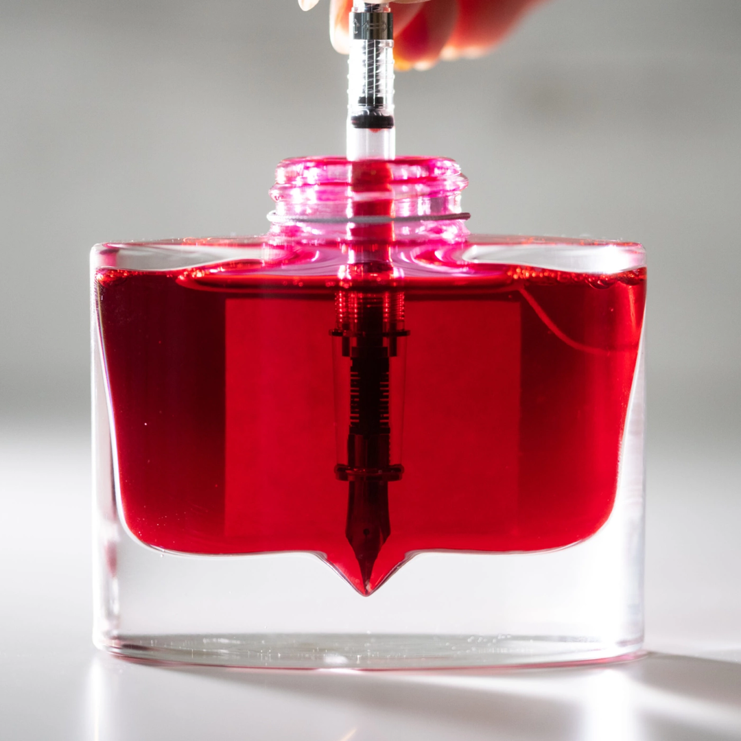 Fordelen med flaske er friheten til å velge blant mange farger, bedre pris og færre deler å bytte. Stempelfyllere rommer dessuten ofte mer blekk enn en converter, så du trenger å fylle sjeldnere. Og ja, selve påfyllingen blir gjerne et hyggelig ritual som er en opplevelse i seg selv, og blekkflaskene er ofte vakre tilbehør som løfter skrivebordet. Vi har mange unike flasker å legge til i samlingen!