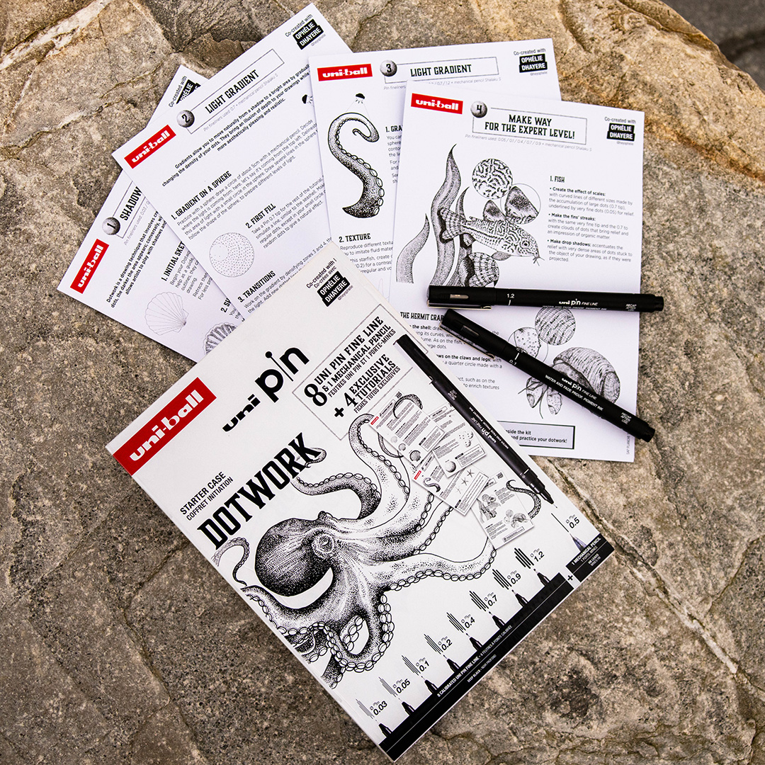 Dette settet er spesielt designet for å tilby presisjon og kontroll, noe som resulterer i realistiske illustrasjoner med imponerende skygger og dybde. Settet inneholder åtte finelinere i ulike spissbredder og en 0,5 mm mekanisk blyant. Det følger også med inspirerende og pedagogisk materiale i form av fire instruksjonsark og et hefte som hjelper både nybegynnere og mer erfarne tegnere med å utvikle teknikken sin og skape egne unike verk med dotwork.