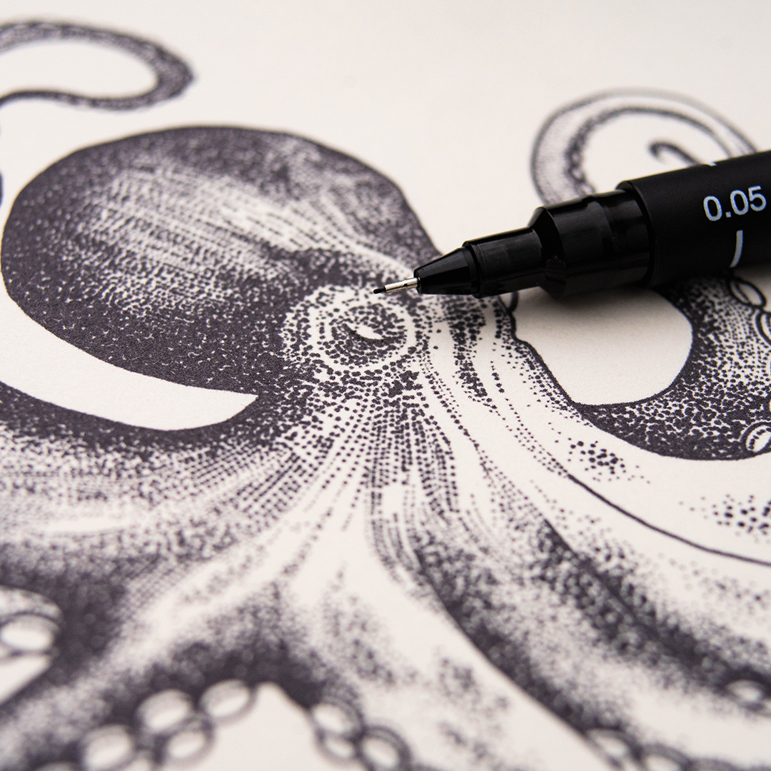 Uni Pin Fine Line har pigmentbasert blekk som er vann- og lysbestandig, noe som sikrer at kunsten holder høy kvalitet over tid. Det høykvalitets blekket gjør det også mulig å bruke sammen med både akvarell og alkoholbaserte tusjer uten at linjene viskes ut.